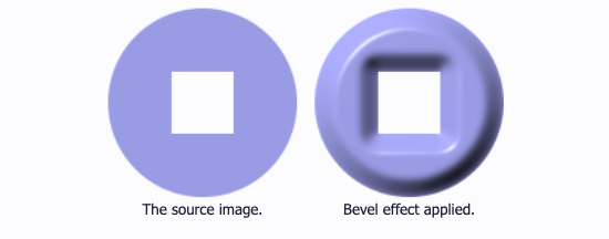 If you look close, you can see that the circle and square are the same sizes. The beveling effect simply added brightness and shadows to give the object the 3D look.